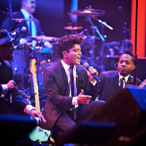 Bruno Mars is an American singer-songwriter and producer famous for his energetic stage performances in various musical styles.